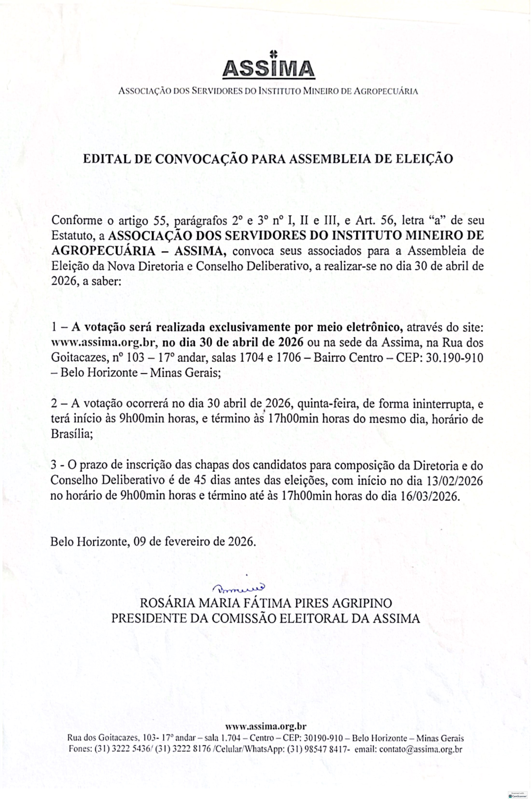 EDITAL DE CONVOCAÇÃO ELEIÇÃO ASSIMA 2026